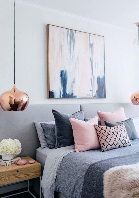 Similarly, if you don’t have sufficient surface for your table or standing lamps, use wall scones or hanging pendant lights to illuminate your space. By mounting bedside lighting, this will allow more space, making your room look bigger. It’s also advisable to install wall sconces above and to the side of your headboard. This works well to draw the eye upward.